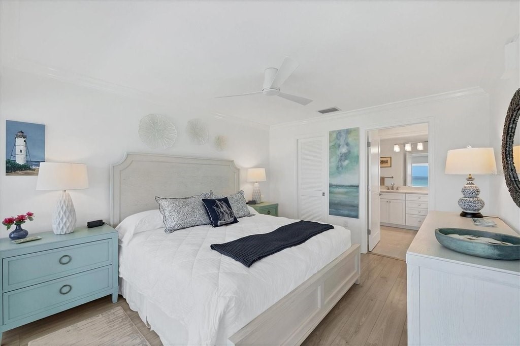 Luxurious Top-Floor Condominium with Gulf Views in Boca Grande Club This stunning top-floor condominium offers an unparalleled retreat with sweeping Gulf views and convenient elevator access. The renovated kitchen features a breakfast bar, custom soft-close cabinetry, sleek white quartz countertops, and stainless appliances. The gulf front bedroom includes a walk-in closet with custom organization system. The spacious primary bathroom has been thoughtfully designed to offer double sinks and expansive countertop space. Additional upgrades include modern lighting, luxury vinyl wide plank flooring, motorized Somfy fabric window shades, full size washer dryer and glass safety railings along the Gulf side to preserve unobstructed beach views. The residence is beautifully furnished and upgraded with impact-resistant windows and sliding doors, along with elegant crown molding throughout. As a member of this beachfront gated community, enjoy access to exceptional amenities, including a recently renovated Gulf-front restaurant, tiki bar, three pools, eight Har-Tru tennis courts, pro shop, and fitness center.